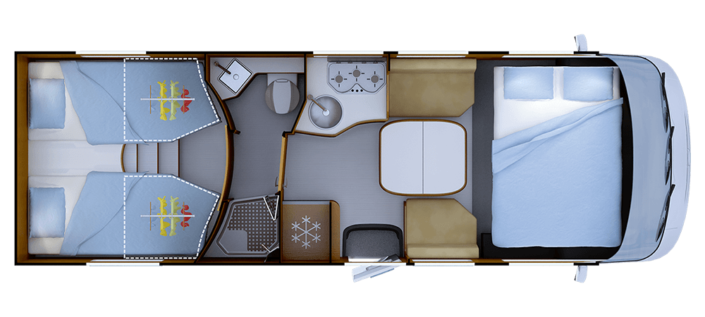• Undersida med tygbeklädnad till hyttsängen och integrerade strålkastare med «coming home»-funktion