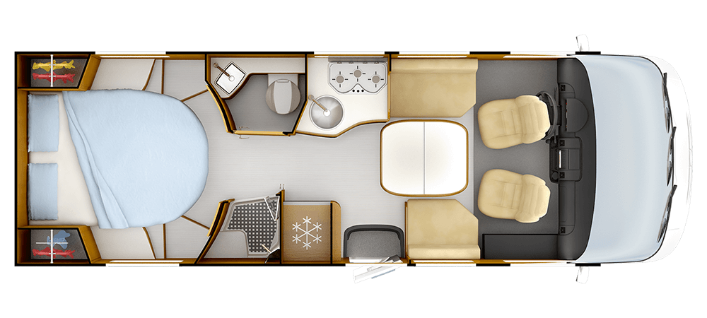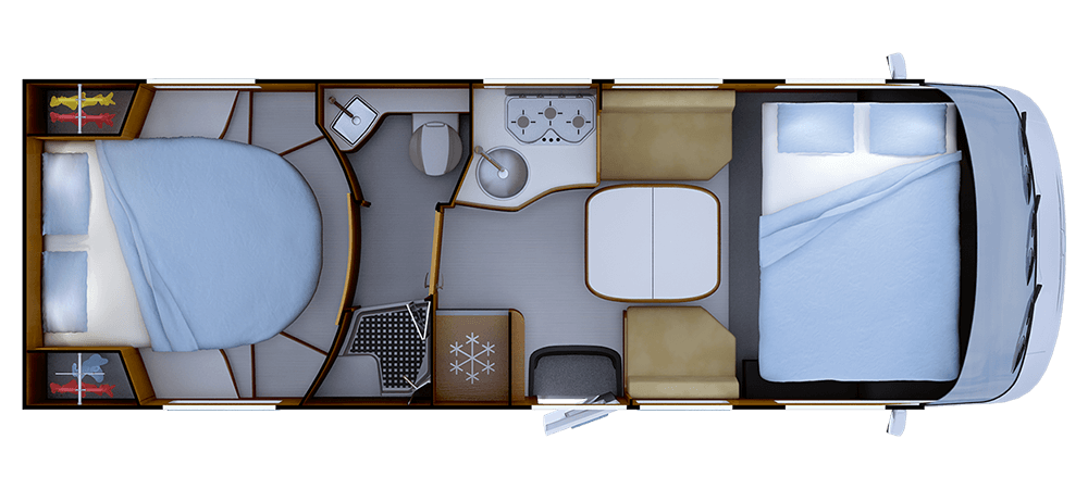 • Undersida med tygbeklädnad till hyttsängen och integrerade strålkastare med «coming home»-funktion